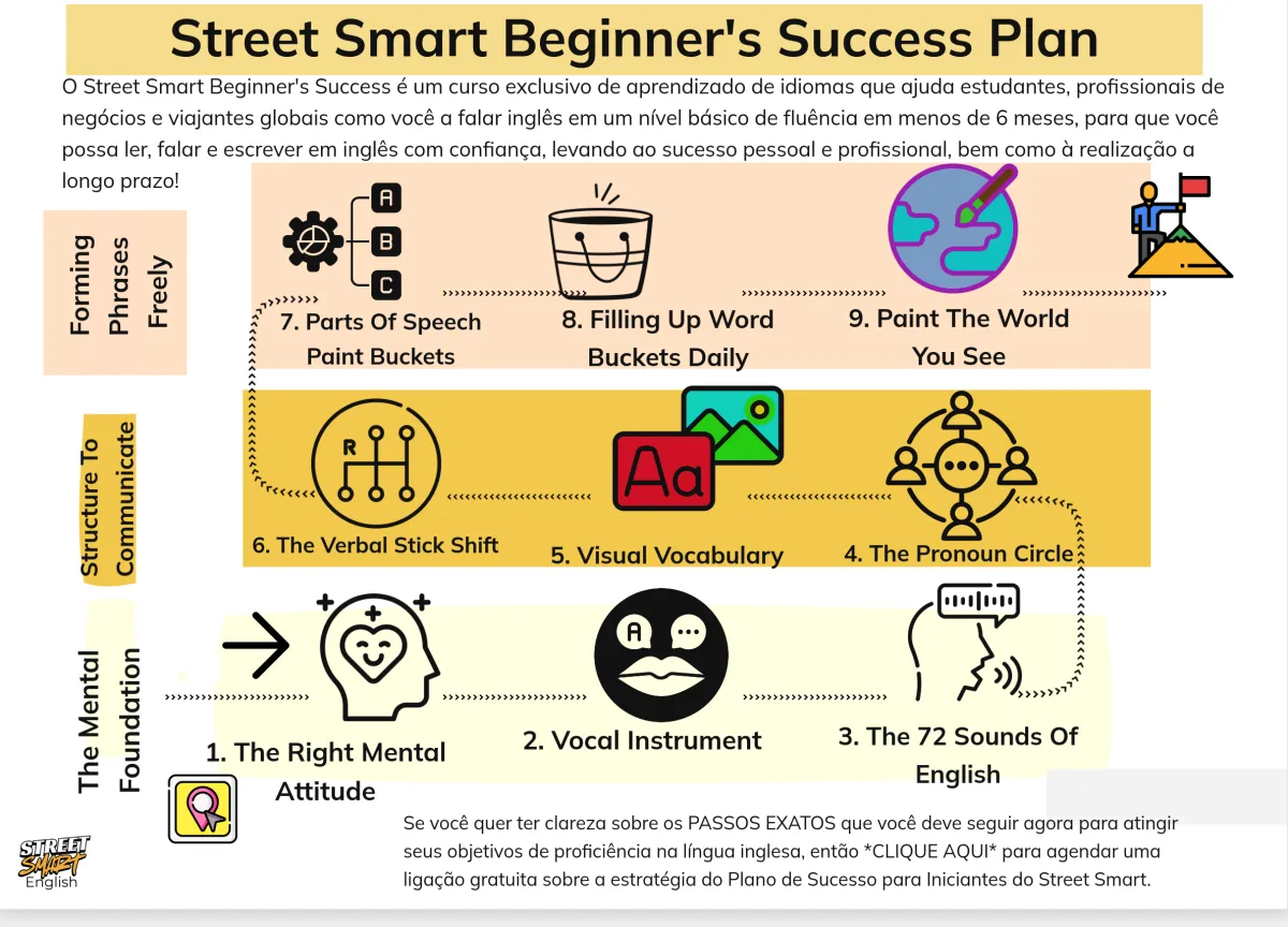 Ao combinar um Curso de Plano de Sucesso com um curso de Conversação, você saberá rapidamente o que dizer e por que está dizendo. Ao abordar gramática e inglês conversacional, você estará preparado para qualquer momento em que precisar produzir inglês, seja falando ou escrevendo.